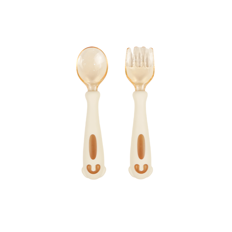 Set thìa OT và nĩa được làm bằng chất liệu sillicon an toàn cho bé, xoay 360 độ cùng thiết kế độc đáo với 2 bên vành được làm lượn sóng và mỏng giúp bé dễ đưa thức ăn vào miệng mà không hề bị văng vãi ra ngoài.